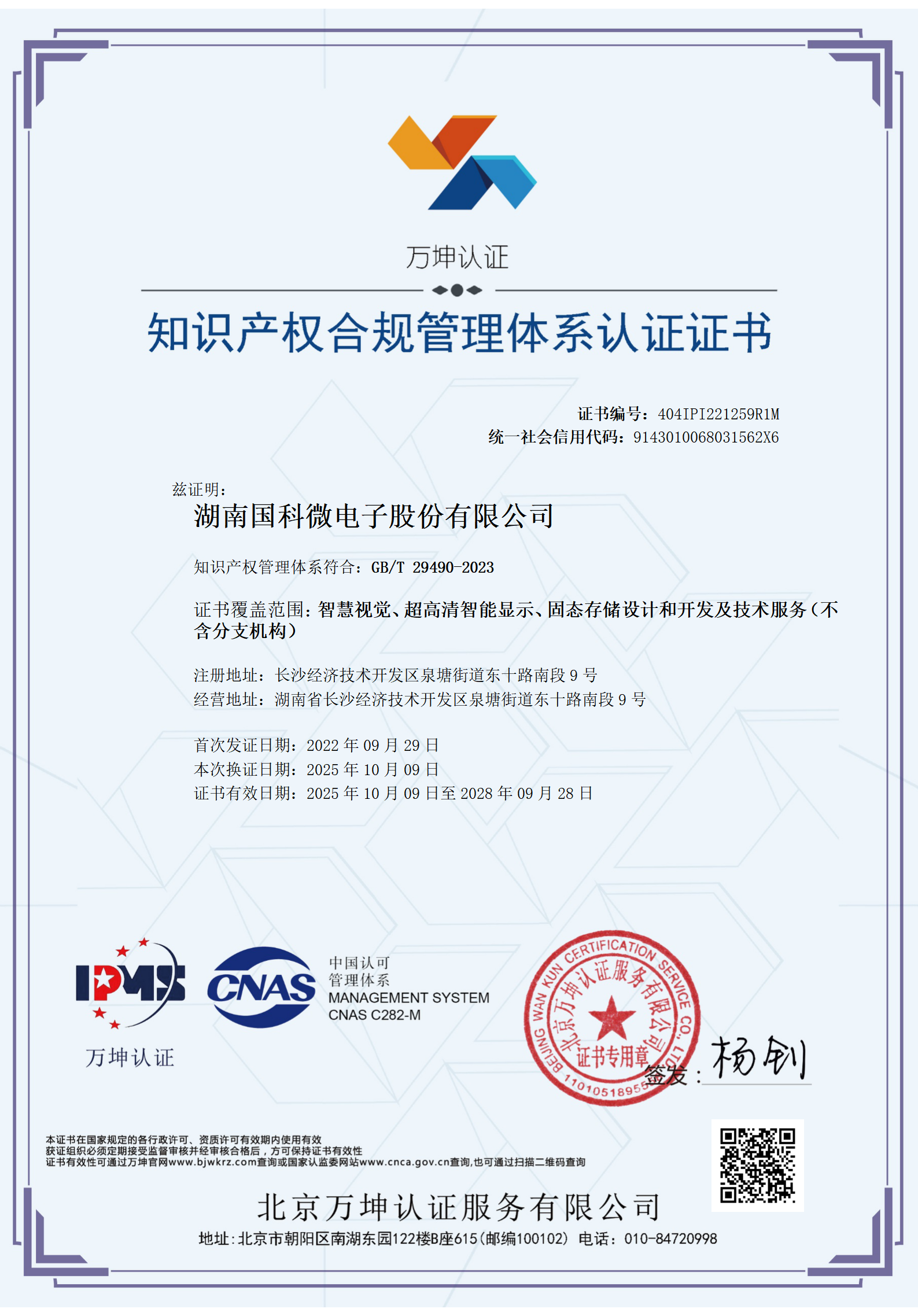 知識產(chǎn)權(quán)管理體系認(rèn)證證書