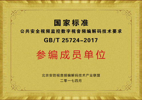 國(guó)家標(biāo)準(zhǔn)公共安全視頻監(jiān)控?cái)?shù)字視音頻編解碼技術(shù)要求參編成員單位
