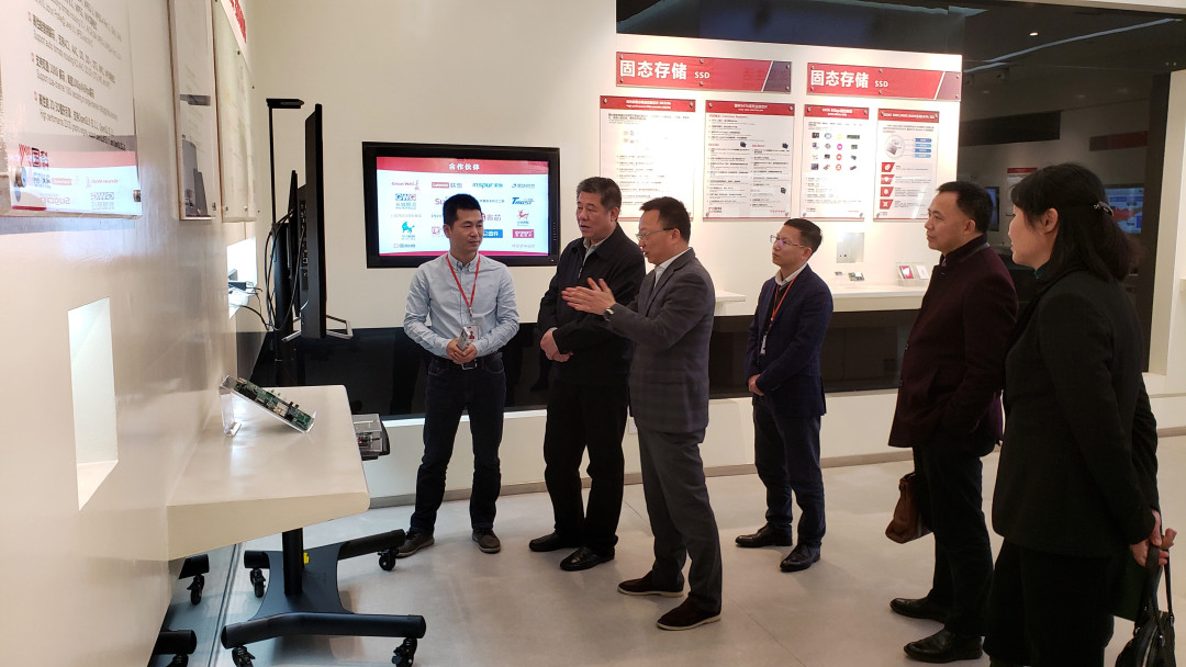 在董事長向平、COO周士兵的陪同下,童旭東一行實(shí)地參觀了國科微的展廳,對國科微在智能機(jī)頂盒、視頻編碼、存儲、物聯(lián)網(wǎng)等領(lǐng)域自主研發(fā)的主要產(chǎn)品一一進(jìn)行了了解,并詳細(xì)咨詢了公司在研發(fā)投入、人才引進(jìn)、市場開展等方面的情況。